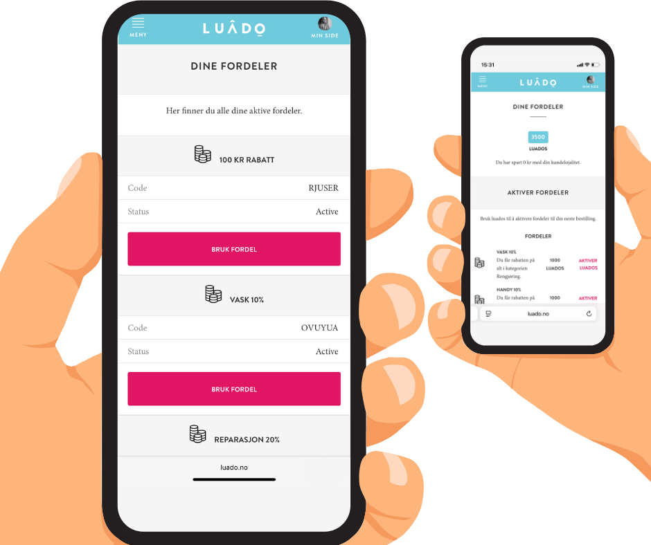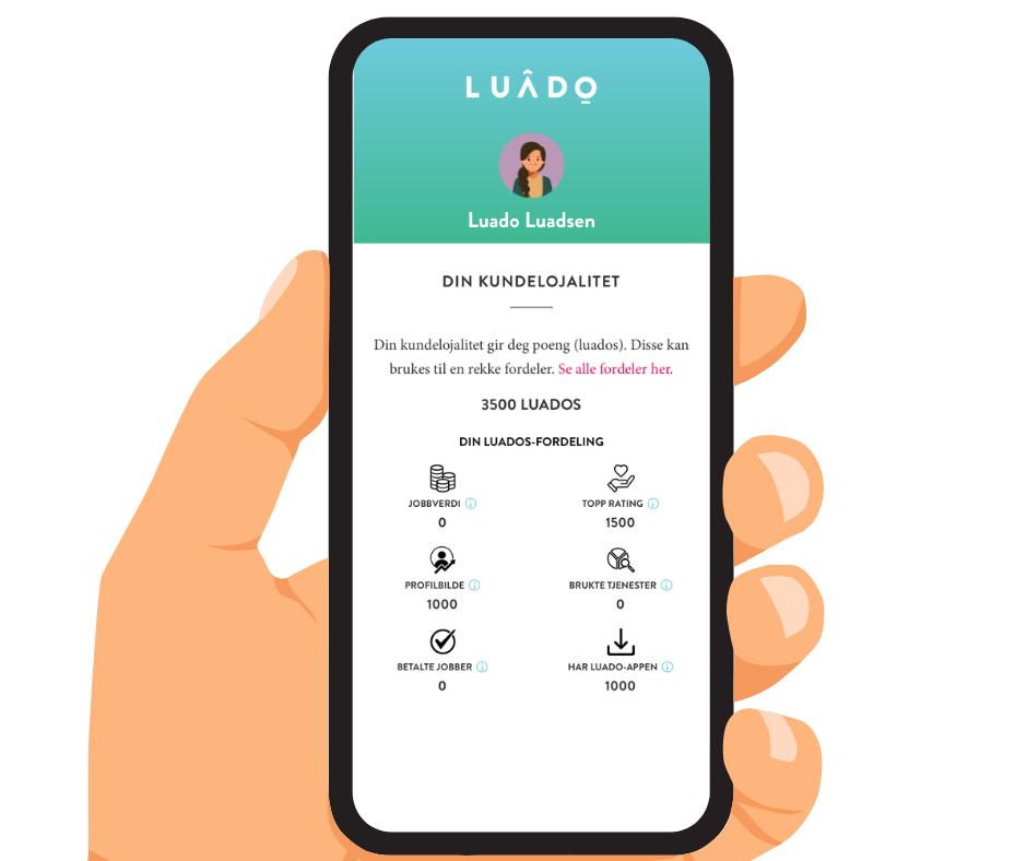 Lyst til å spare mer penger, jo mer hjelp du bestiller? Luado har et tilpasset fordelsprogram for deg som kunde. Du mottar «luados» (poeng) for hvert kjøp – som kan benyttes for rabatt på akkurat det du trenger hjelp til.