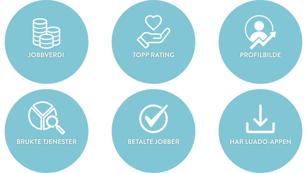 Hver jobb som registreres som «betalt» via Luado gir deg 500 luados. Det vil si at dersom du har 3 betalte jobber, så gir det deg 1500 luados.